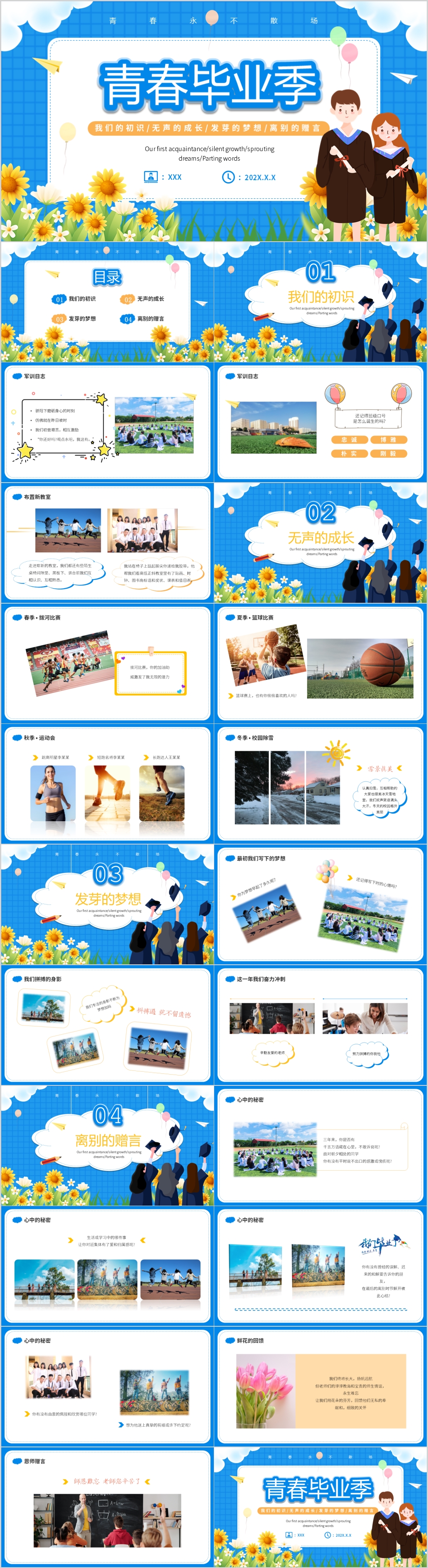 蓝色致青春毕业季青春毕业纪念册PPT动态模板