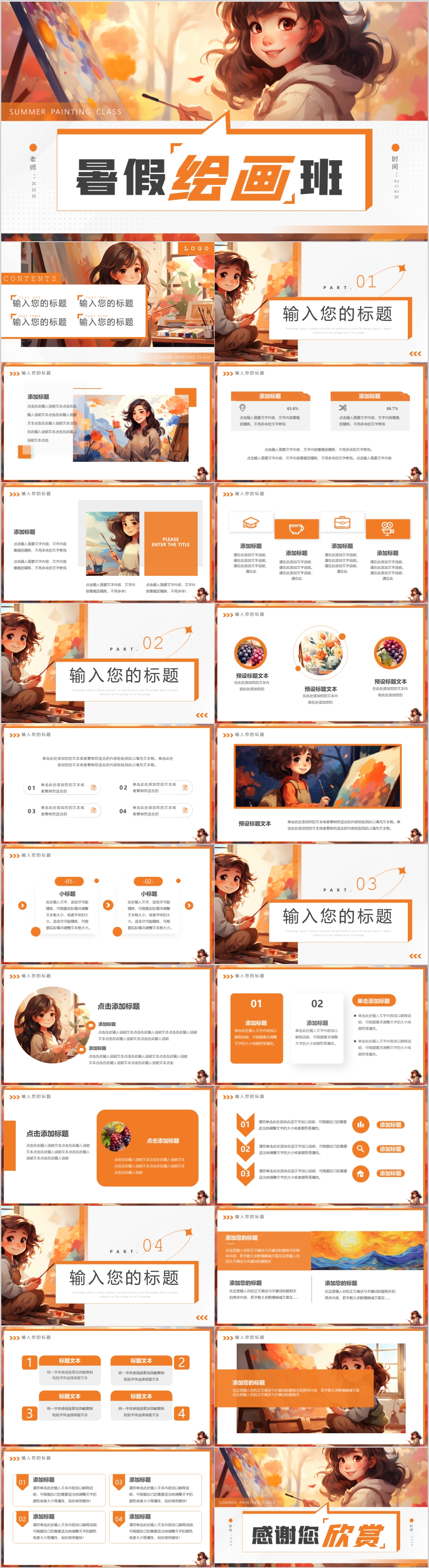 卡通少儿暑假绘画培训招生宣传动态PPT模板