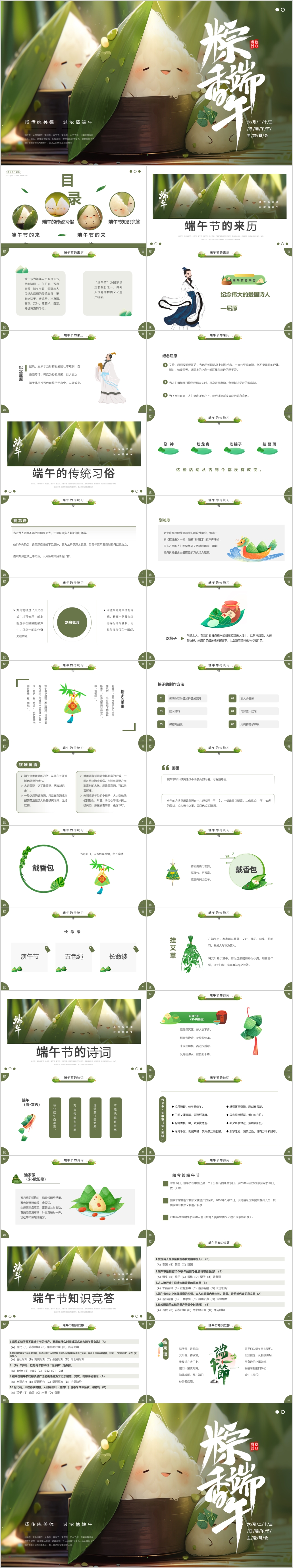 绿色清新风端午节粽子节介绍主题班会PPT模板