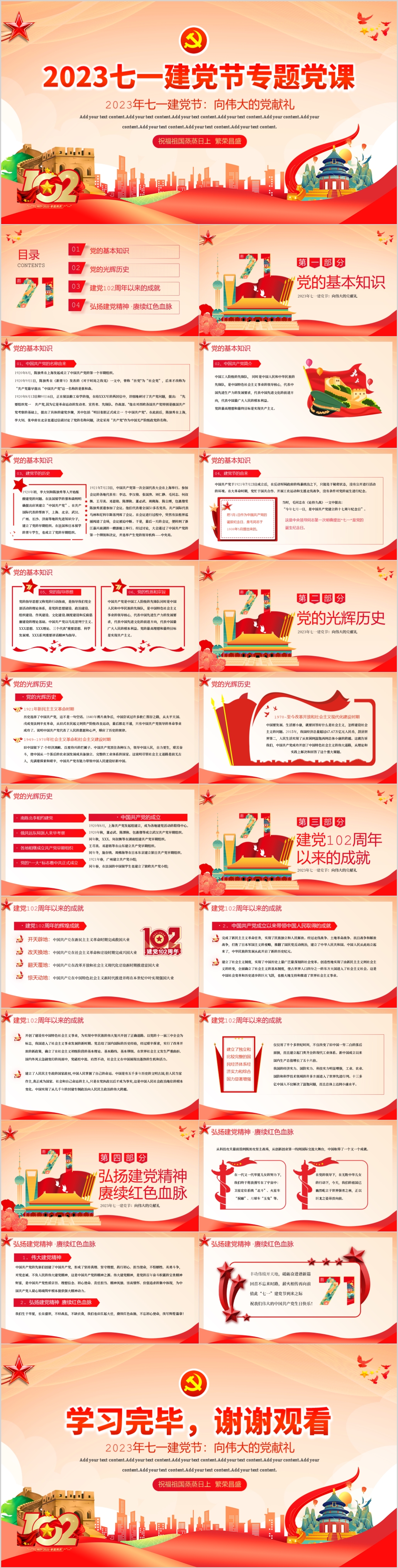 国潮风七一建党节102周年党史教育专题党课PPT模板