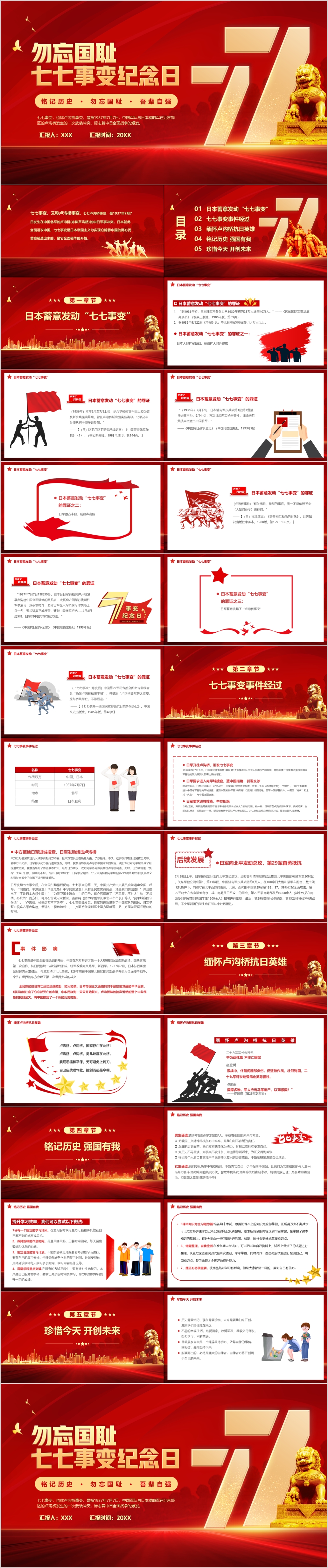 纪念勿忘国耻七七事变86周年主题党课PPT模板