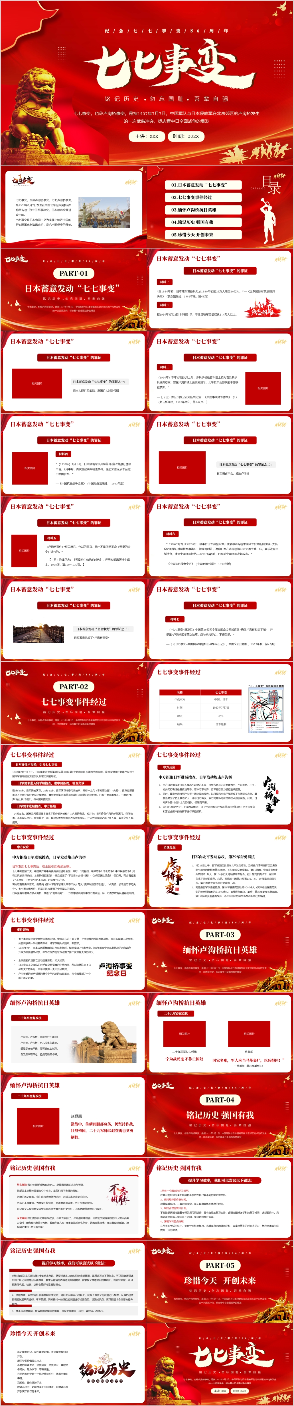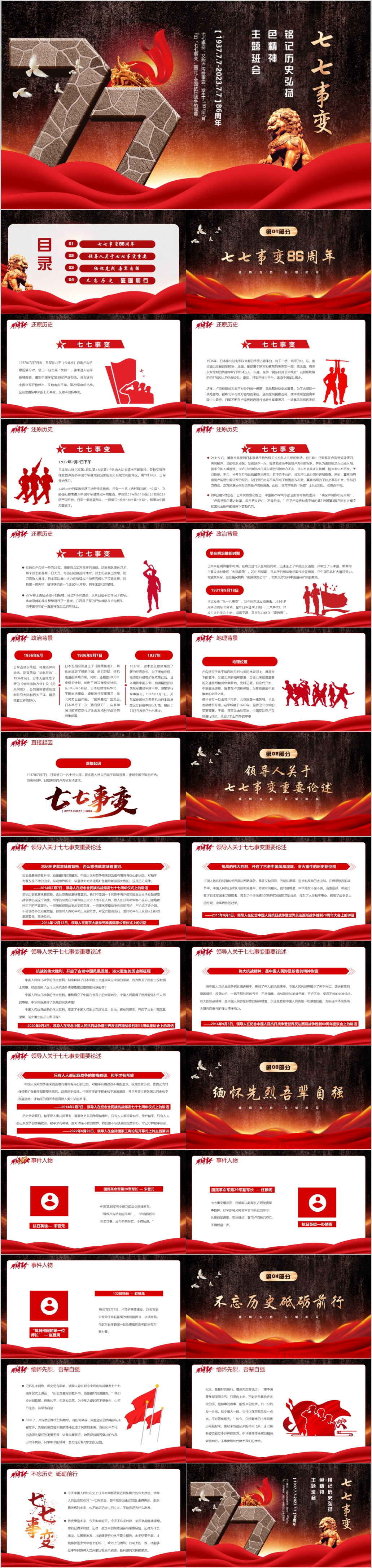 红色纪念七七事变86周年主题党课PPT模板