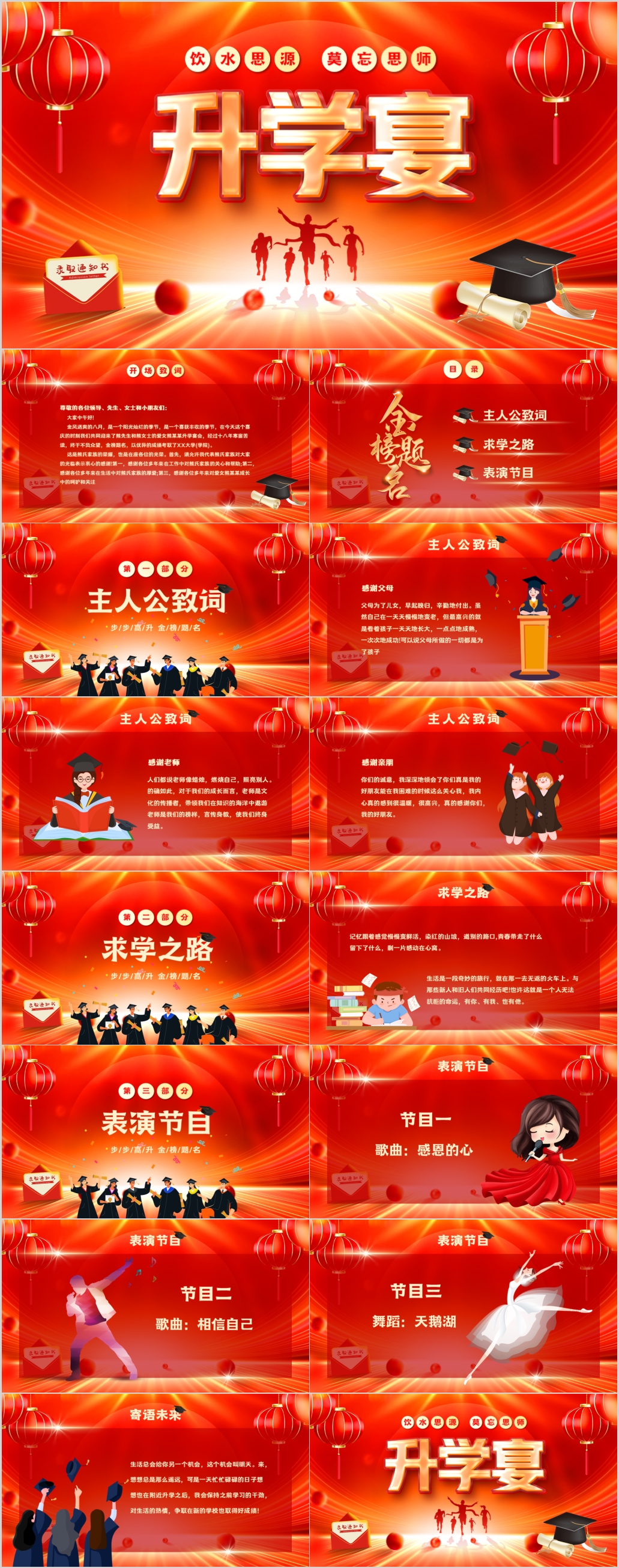 红色升学宴金榜题名谢师宴答谢会喜庆通用ppt模板