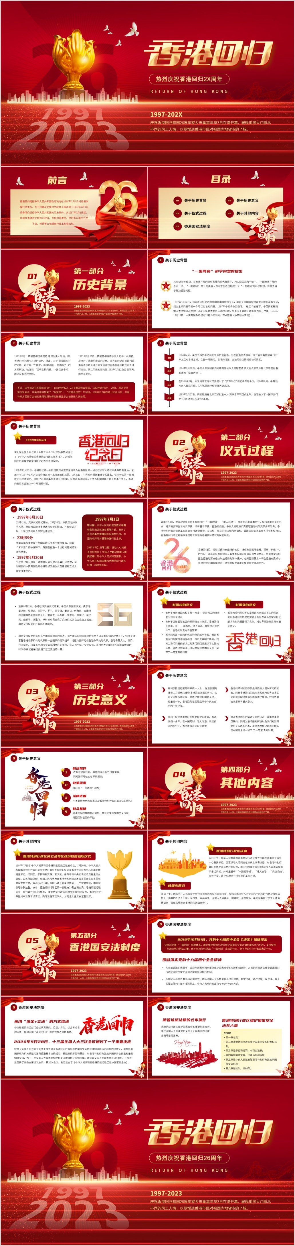 红色香港回归纪念日206周年爱国教育主题党课ppt模板