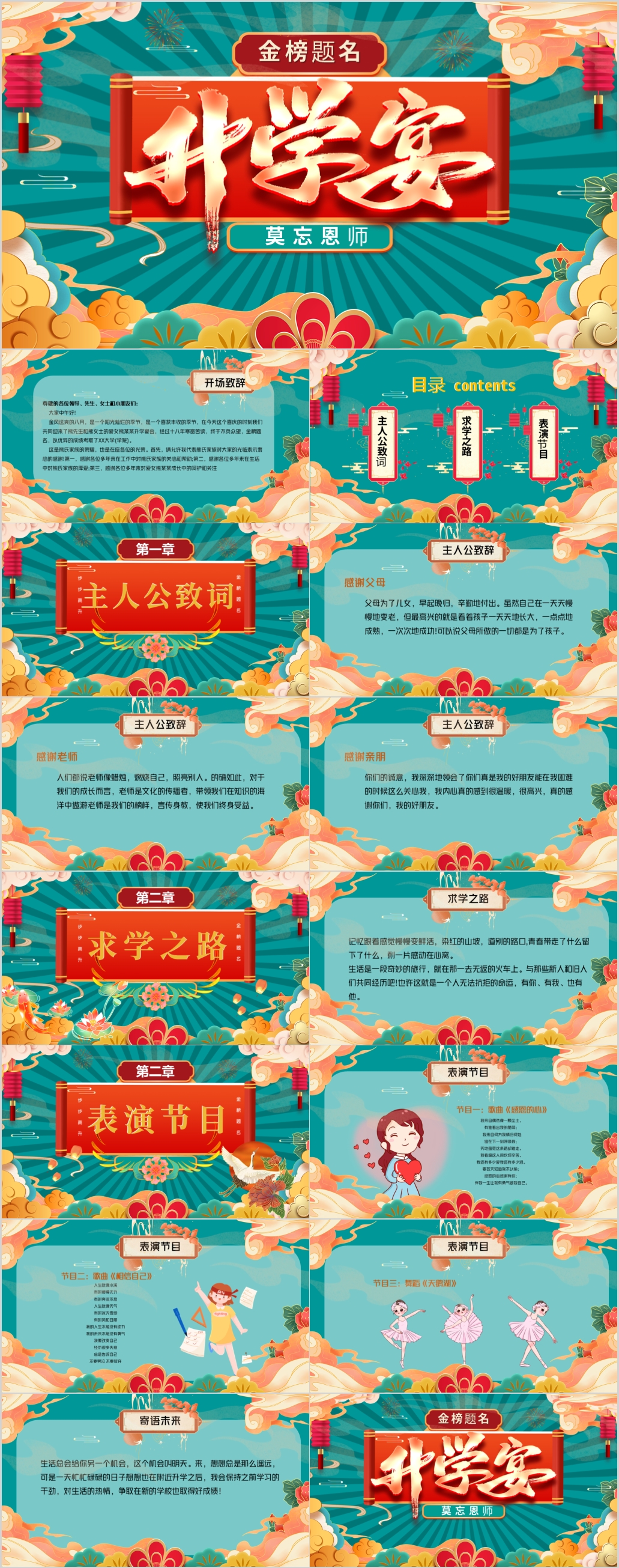 国潮风喜庆金榜题名升学宴状元宴谢师宴PPT模板