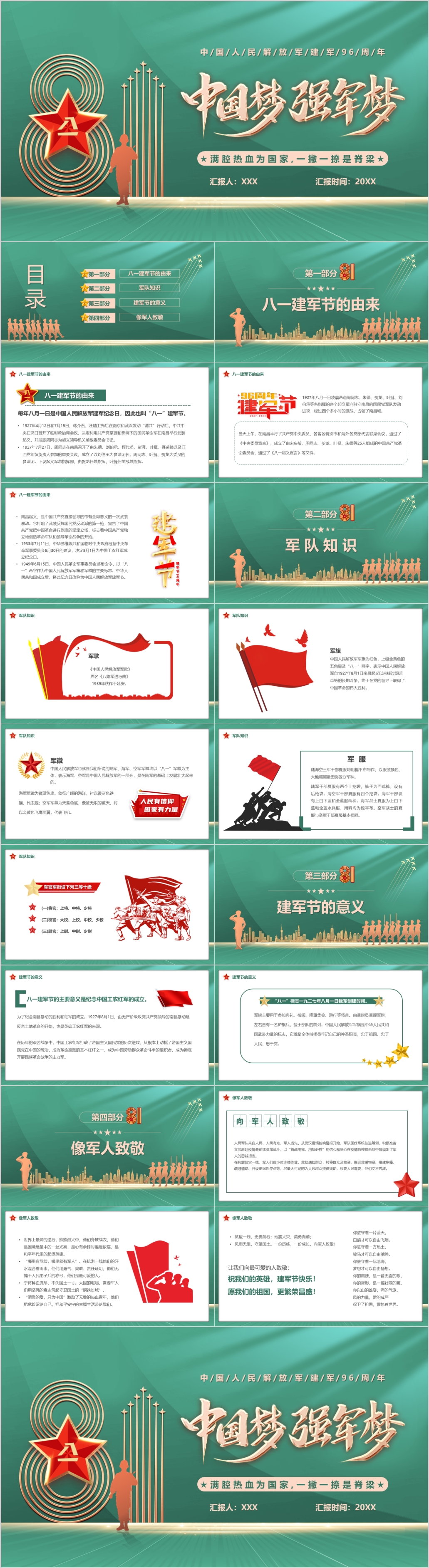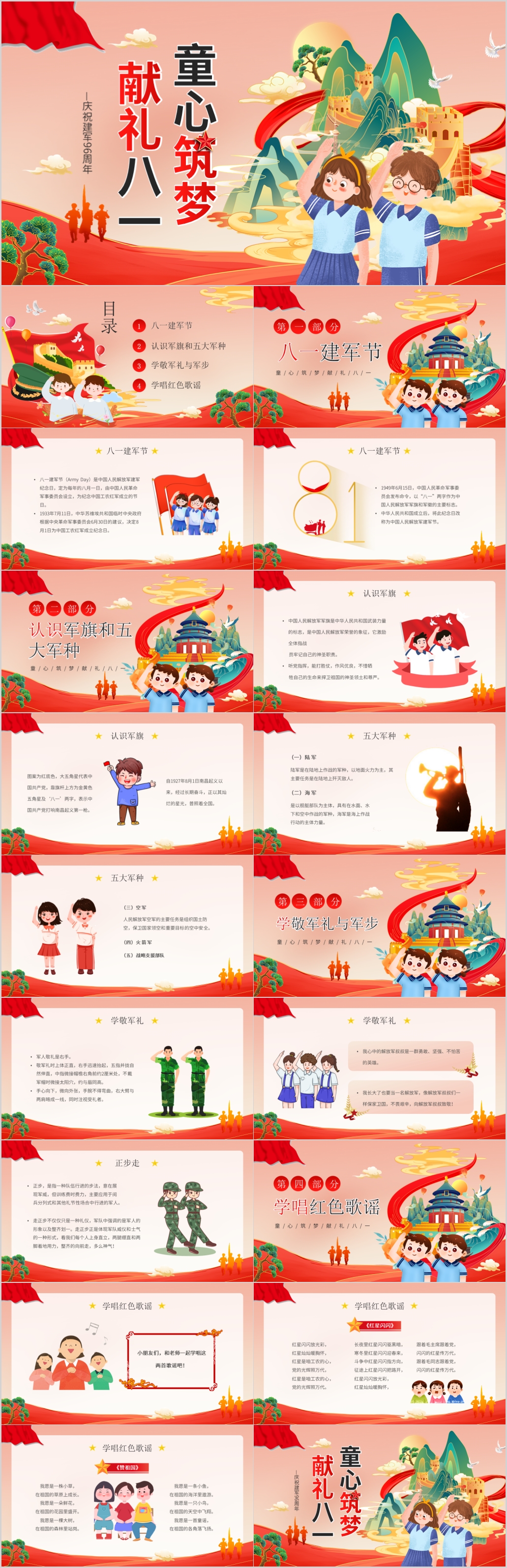 八一建军节96周年童心筑梦献礼八一主题课件PPT模板