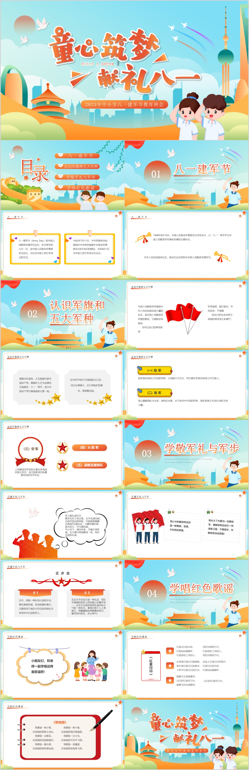 童心筑梦献礼八一建军节96周年主题班会课件PPT模板