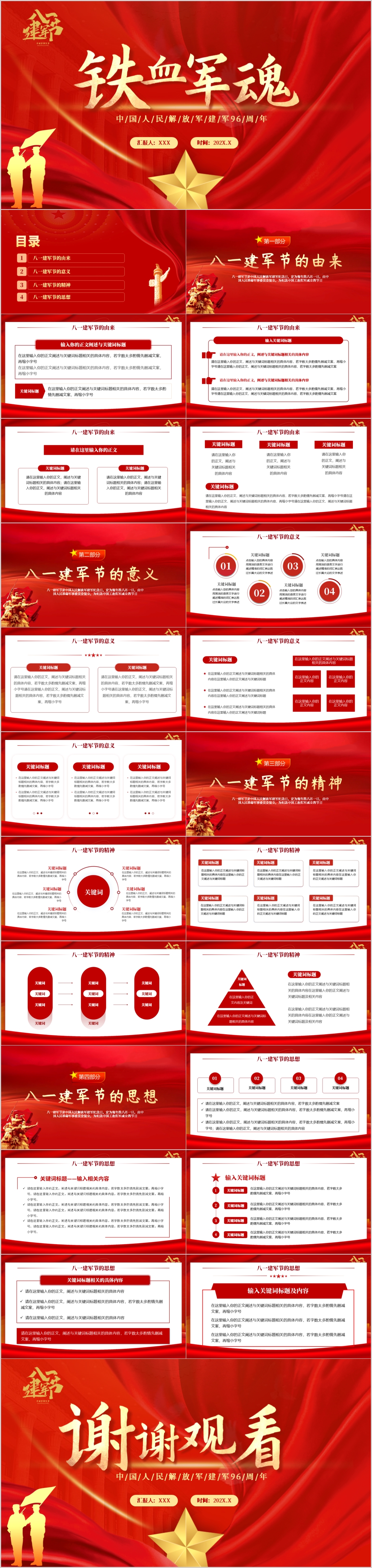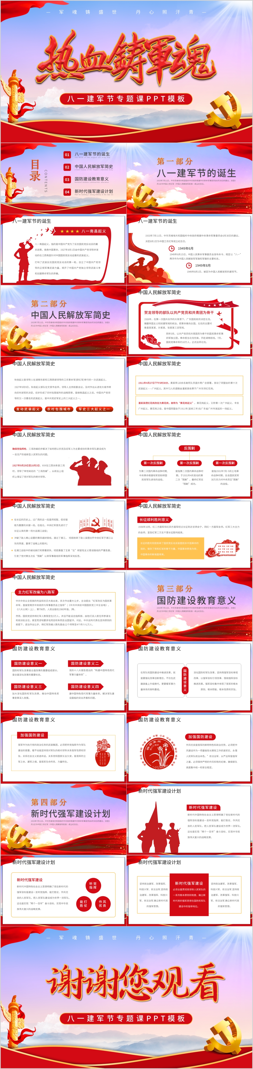 红色铁血军魂八一建军节通用党课PPT模板
