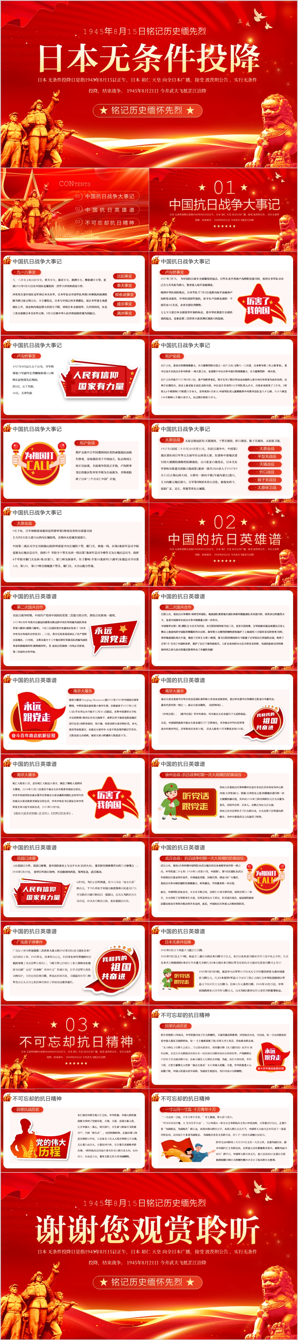 红色纪念日本无条件投降日抗战胜利主题党课PPT模板