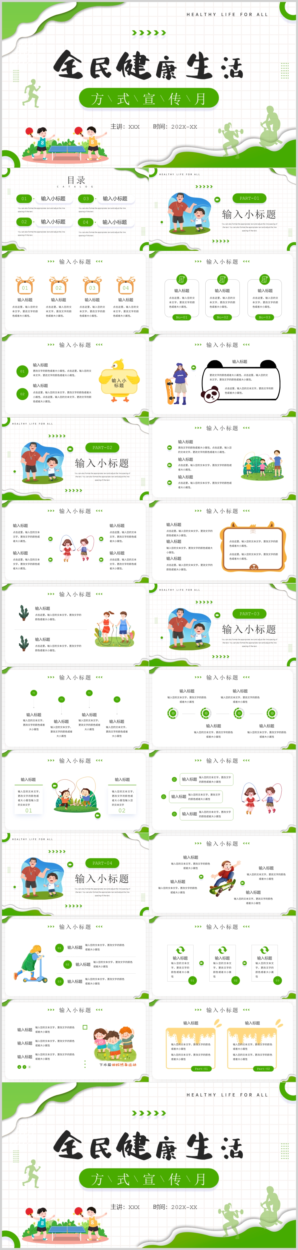 2022年全民健康生活运动低碳环保课件PPT模板