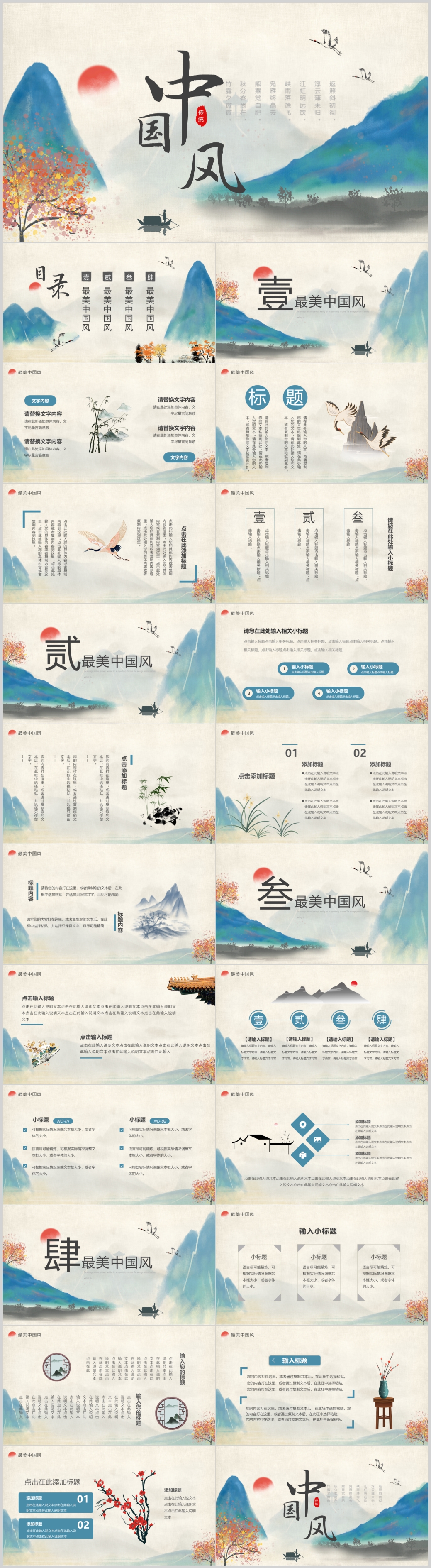 国潮风水墨古风古典艺术中国风工作总结计划ppt模板