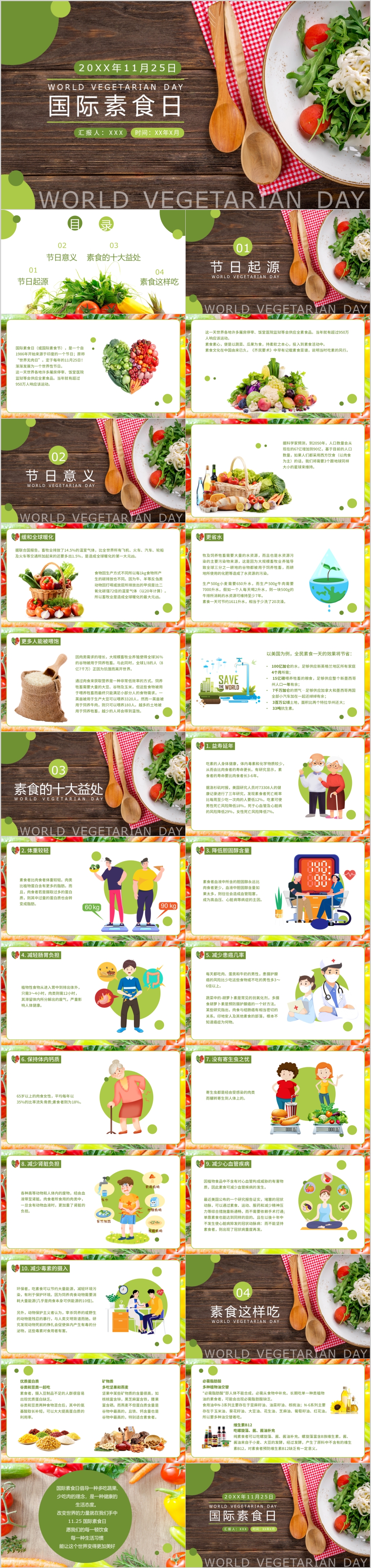 绿色国际素食日主题介绍PPT模板