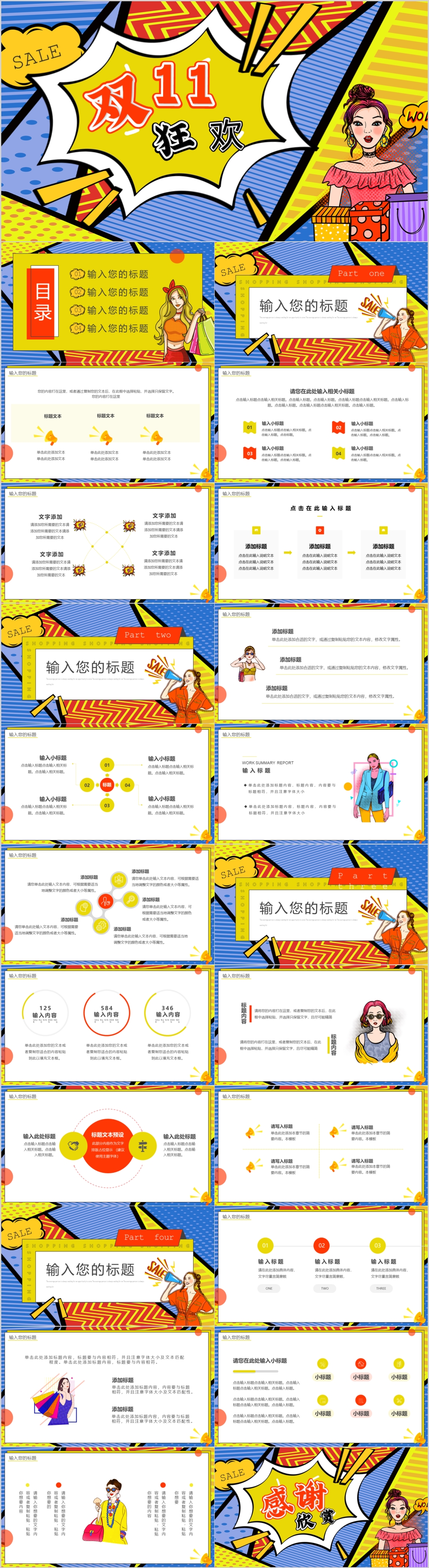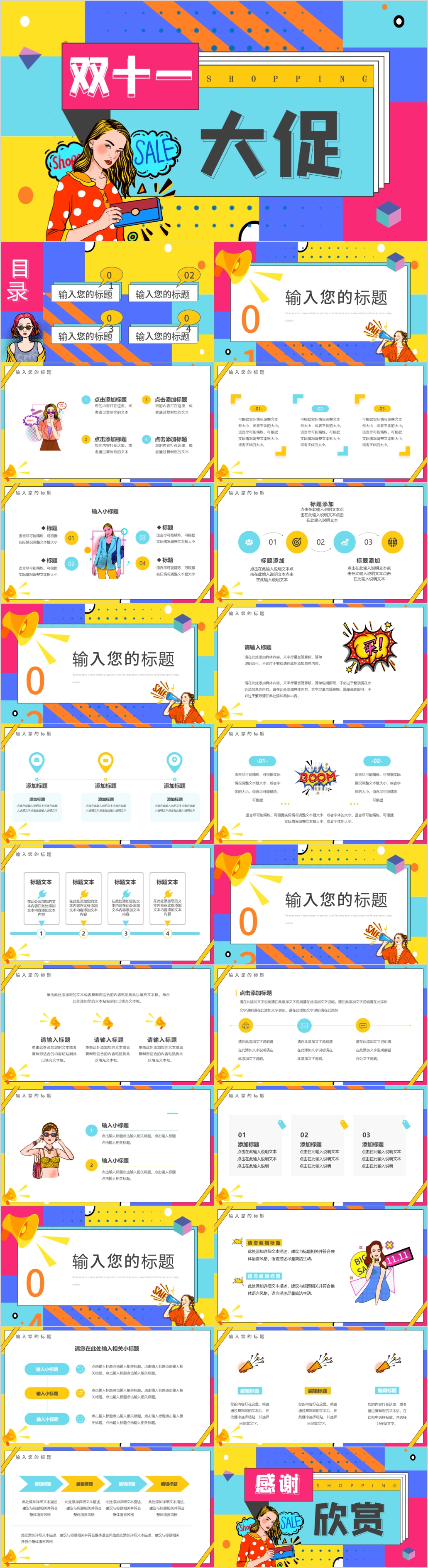 双十一天猫购物狂欢女性购物节通用PPT模板