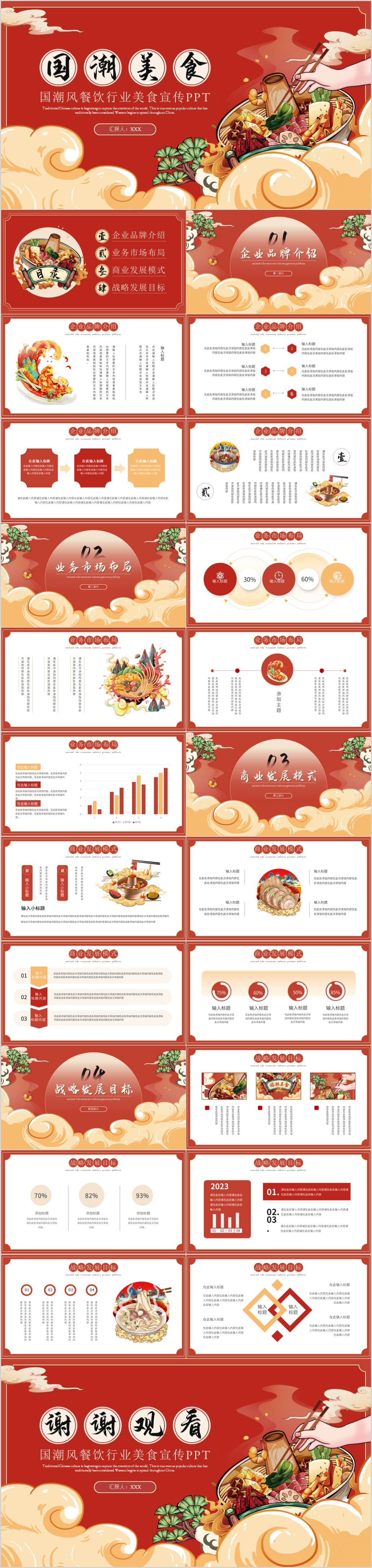 红色国潮风餐饮行业美食宣传介绍PPT模板
