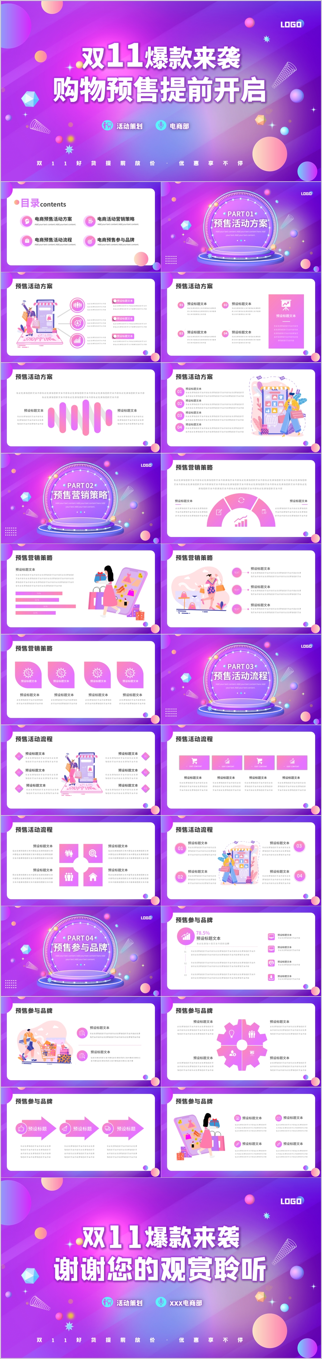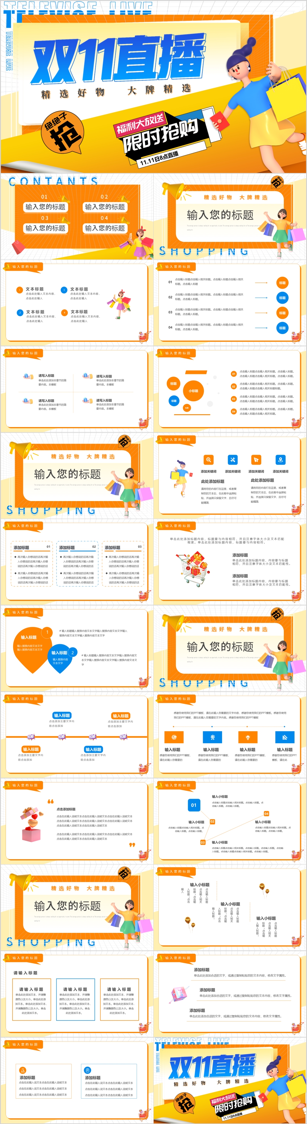 扁平化双十一直播带货电商促销活动策划ppt模板