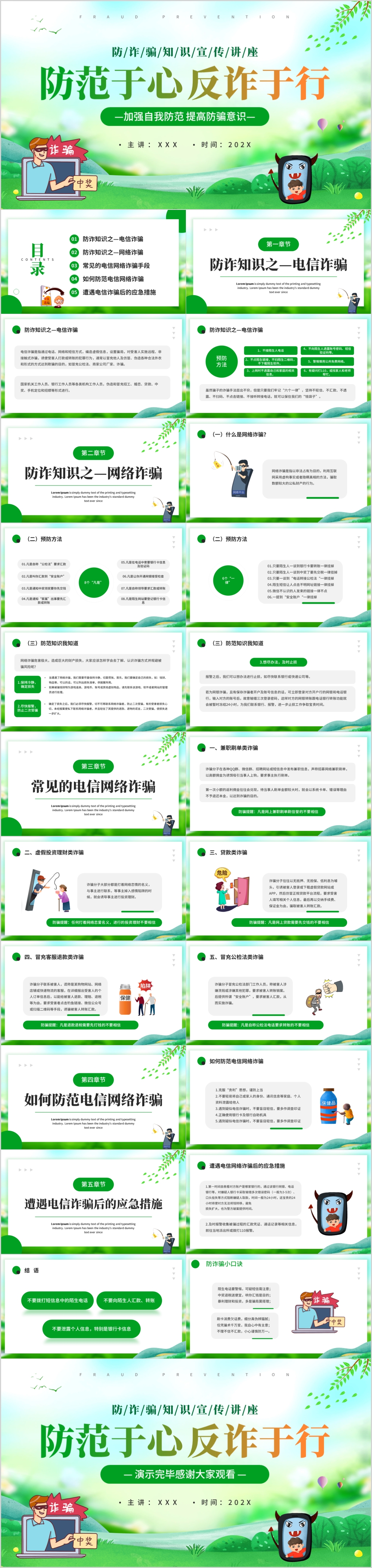 绿色加强自我防范预防诈骗知识宣传讲座课件PPT模板