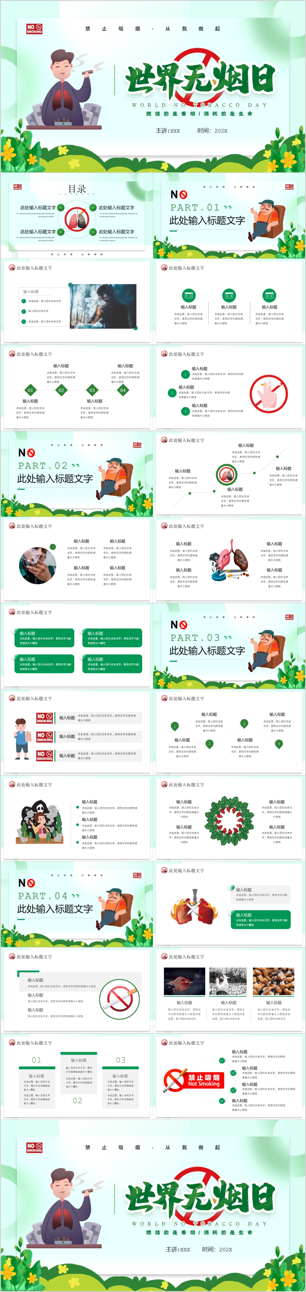 绿色吸烟有害健康公益宣传世界无烟日PPT模板