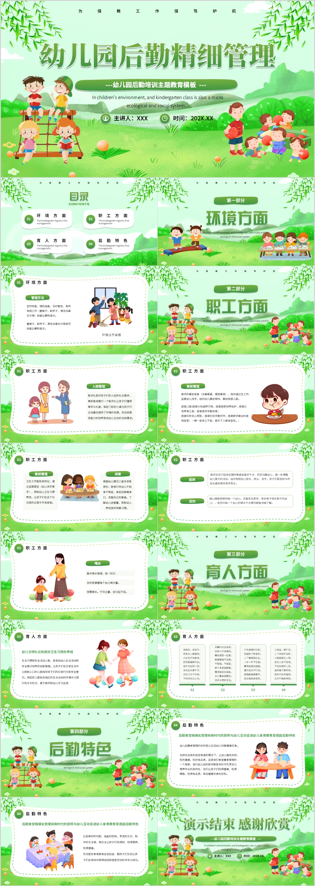 绿色幼儿园中小学生后勤管理培训主题教育课件PPT模板