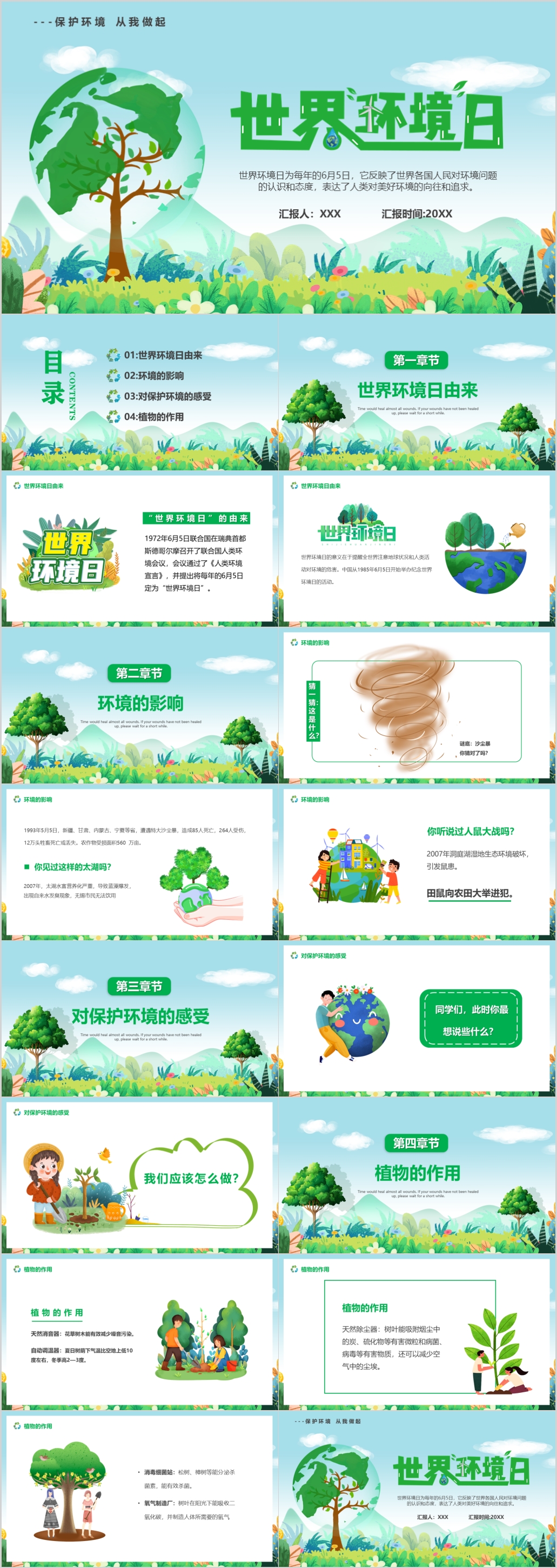 世界环境日绿色清新主题活动策划通用PPT模板