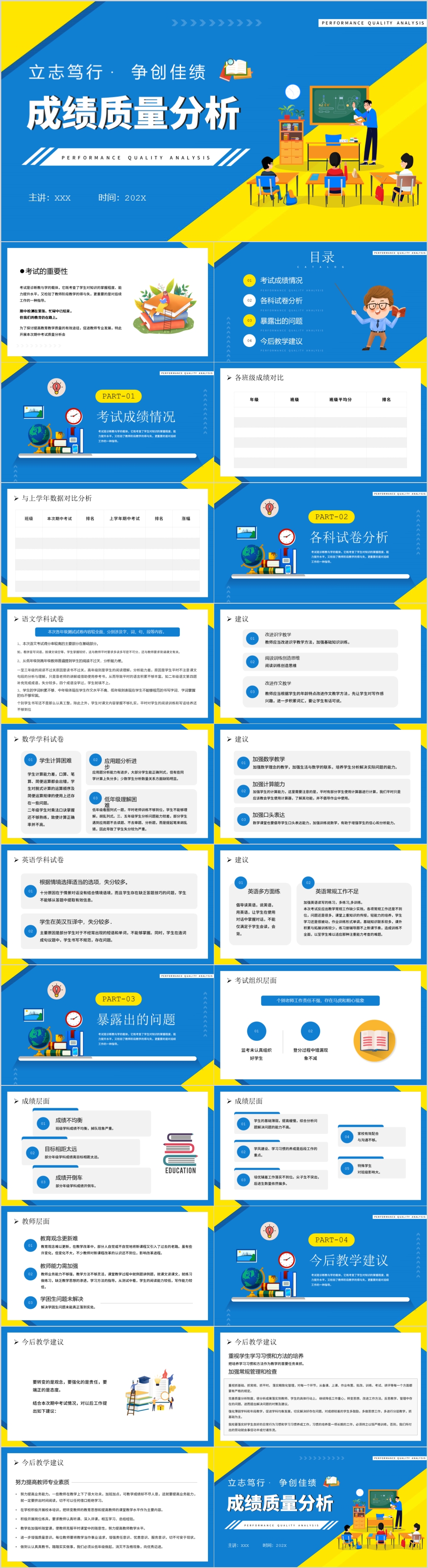 蓝色简约期末成绩分析教学质量评价PPT模板