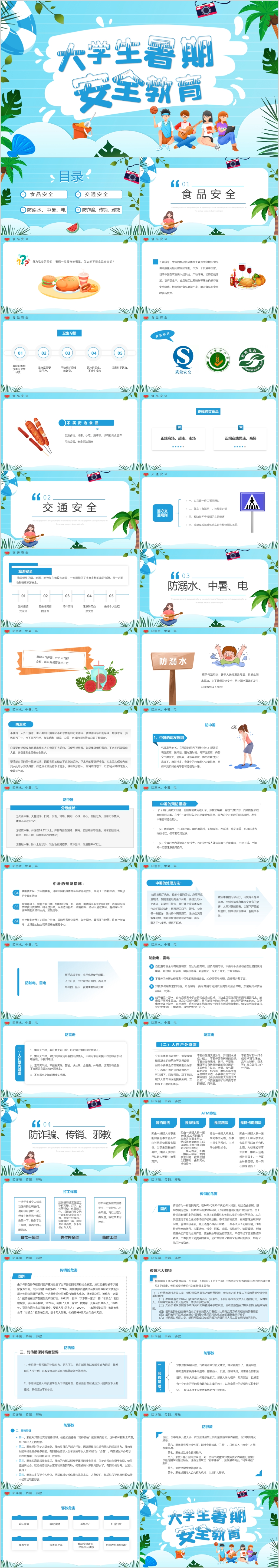 蓝色大学生暑假安全教育主题班会课件PPT模板