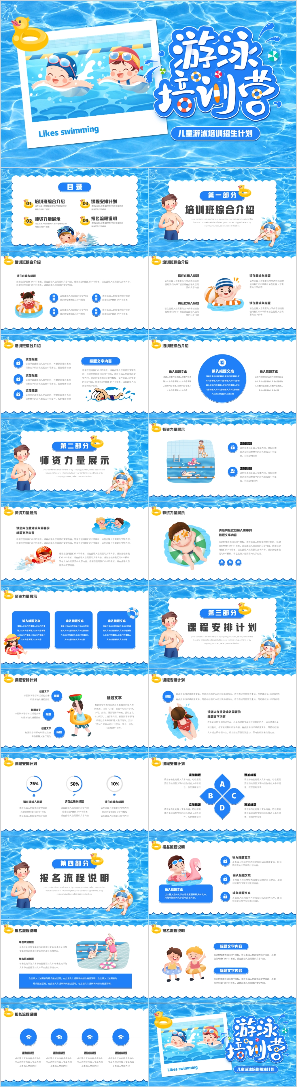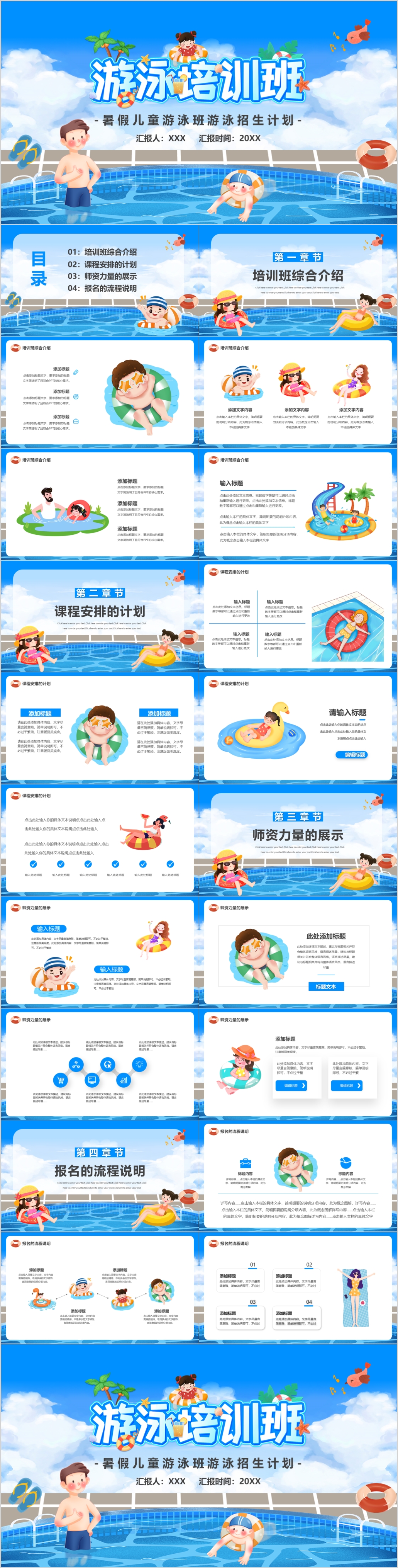 蓝色简约大气夏季暑期游泳培训暑假招生计划ppt模板
