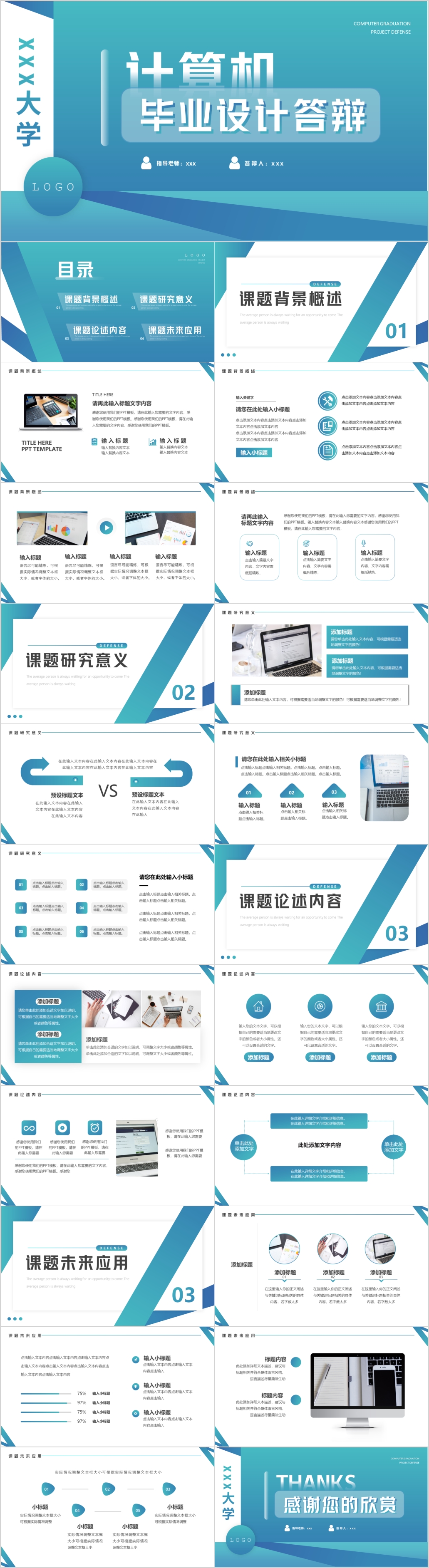 蓝色简约计算机专业毕业论文答辩通用PPT模板