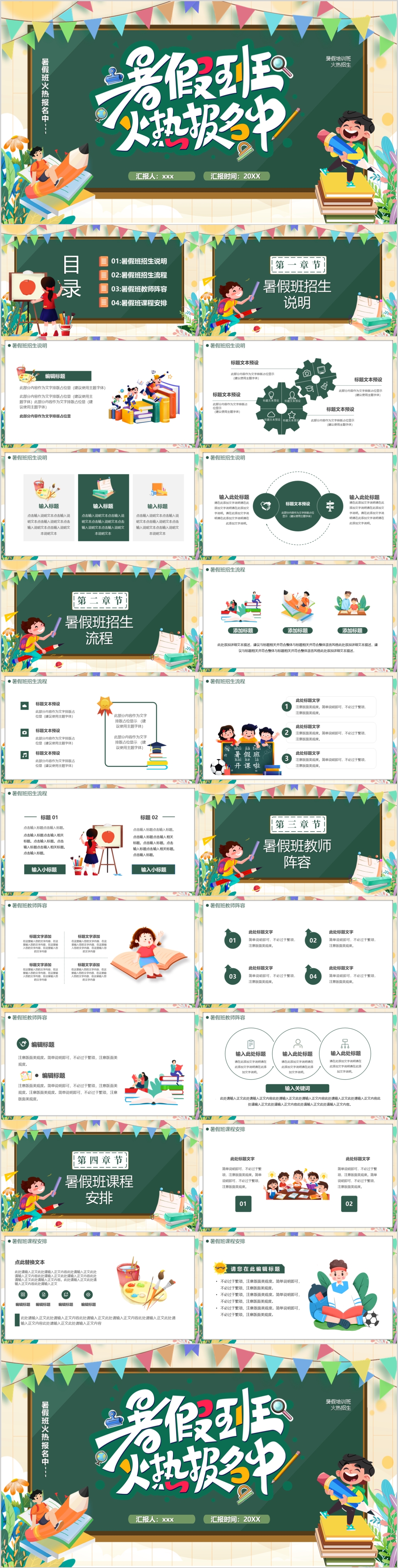 卡通暑假班报名暑假招生工作计划开展PPT模板