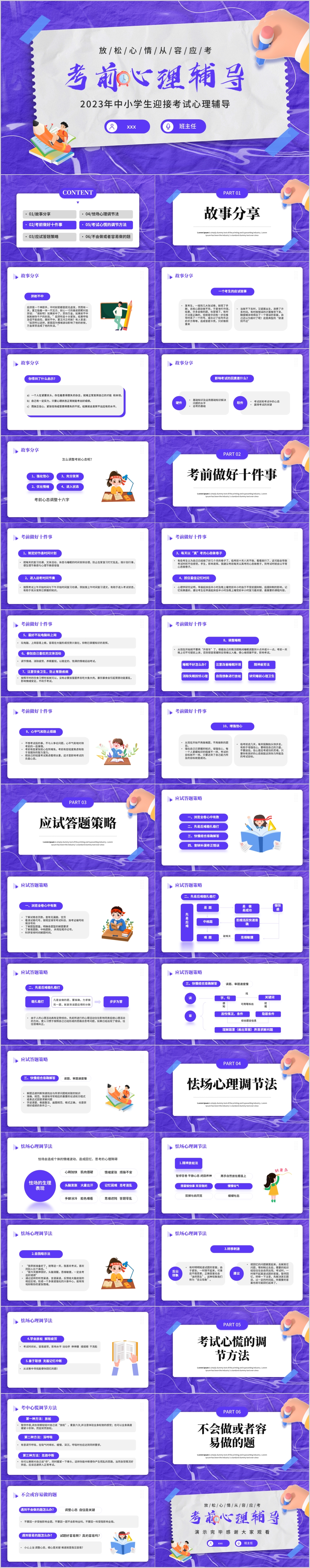蓝色通用考前心理辅导主题教育课件PPT模板