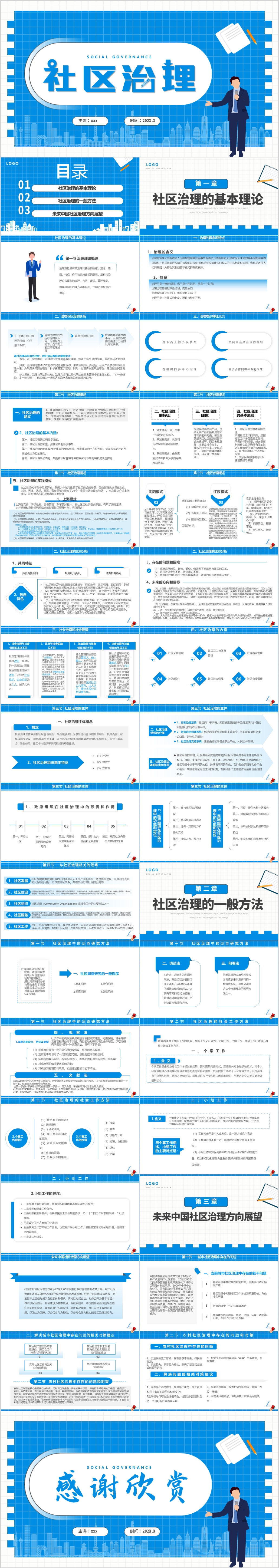 蓝色社区治理基本管理工作汇报计划通用PPT模板