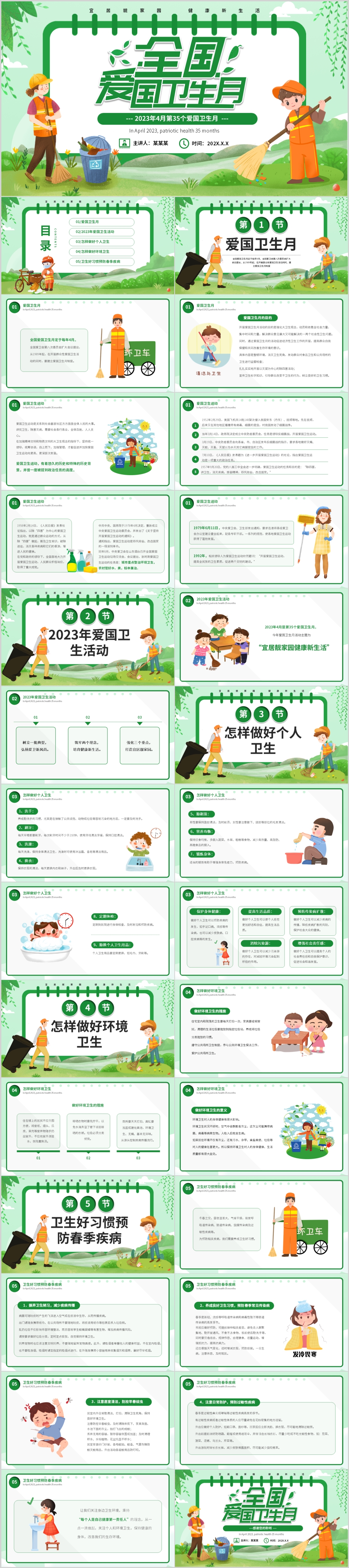 绿色爱国卫生月运动宣传环卫爱护卫生PPT模板