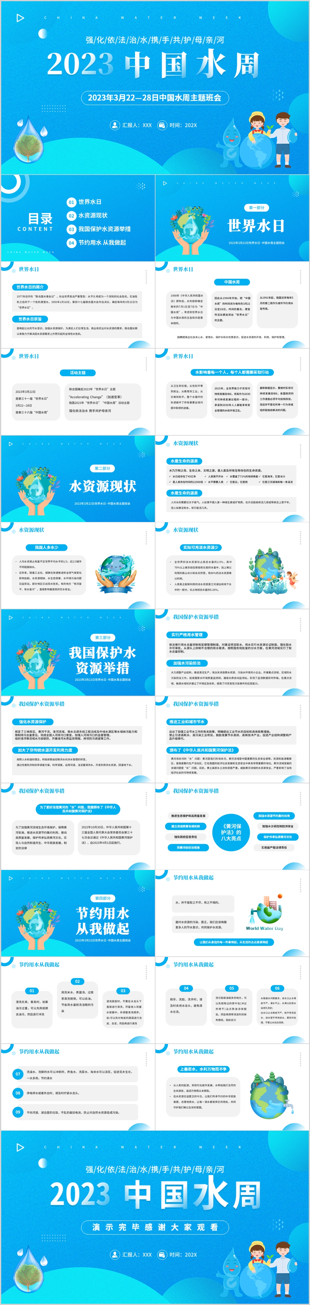 2023年蓝色中国水周世界节水日活动班会ppt模板
