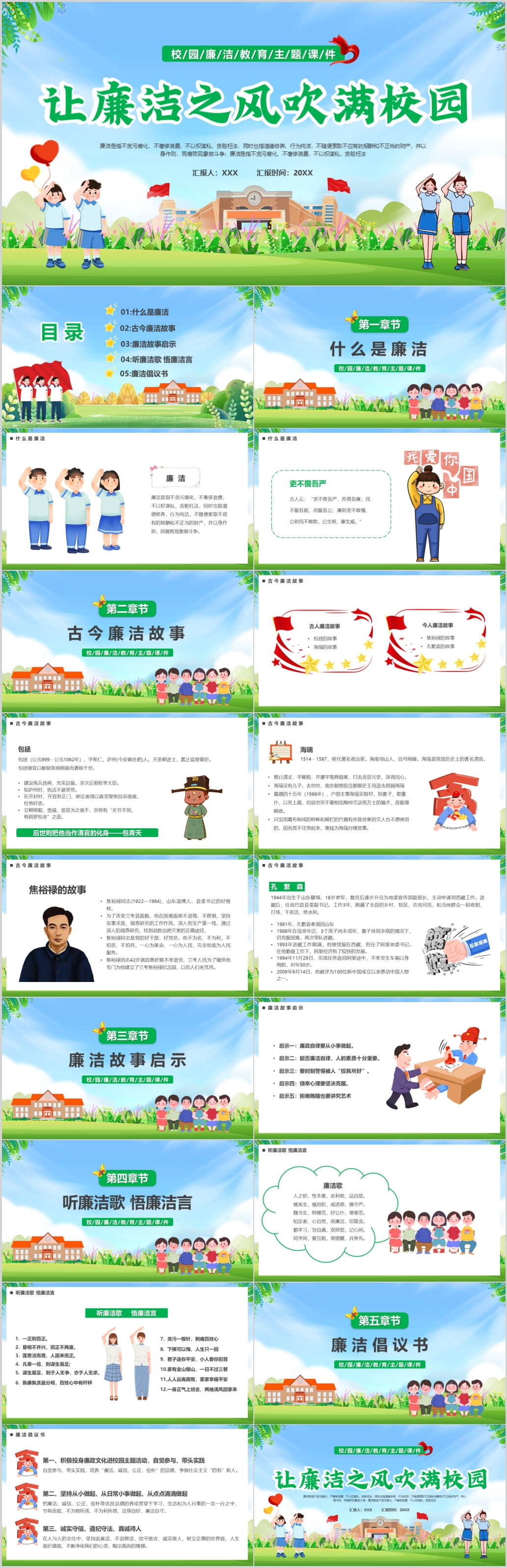 卡通让廉洁之风吹满校园主题班会课件PPT模板
