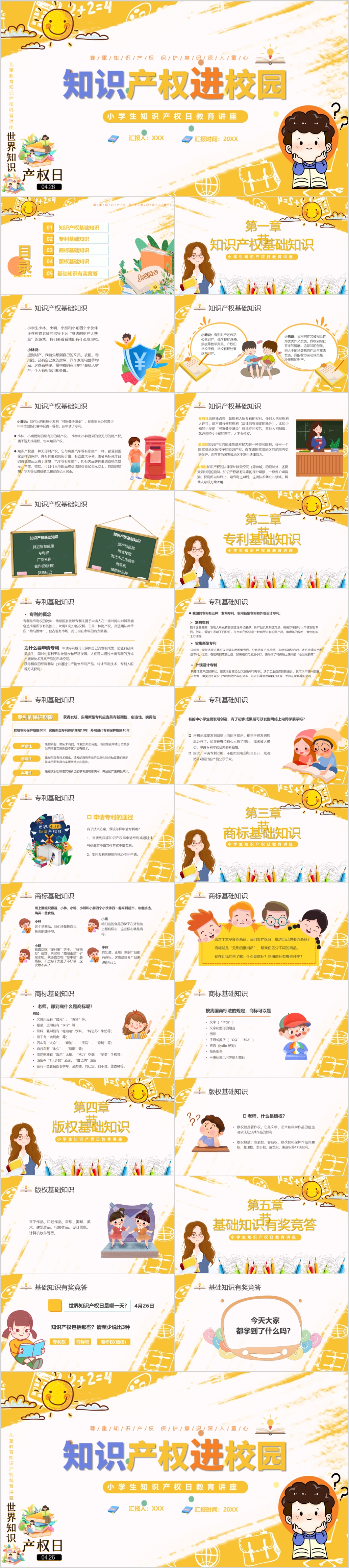 卡通中小学生4月26日知识产权日进校园主题班会课件PPT模板