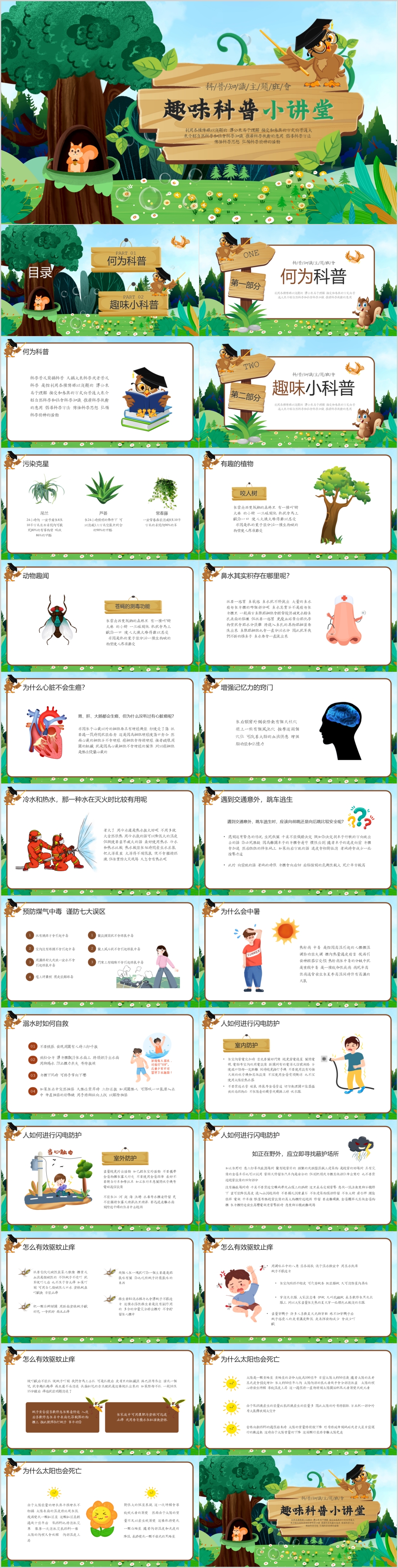绿色卡通中小学生趣味科普小讲堂主题班会课件PPT模板