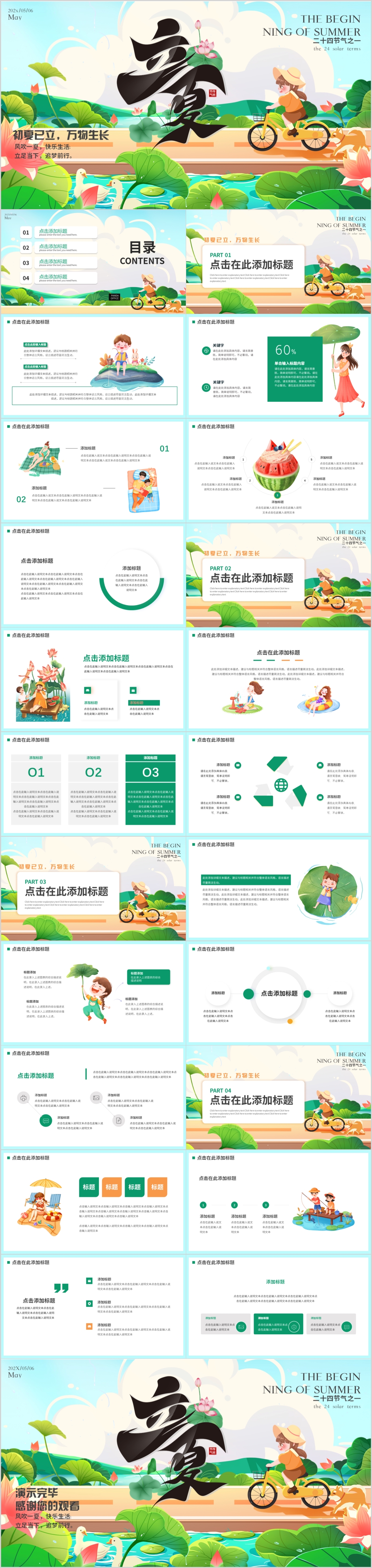 卡通校园文化教育中国传统二十四节气立夏知识普及主题班会PPT
