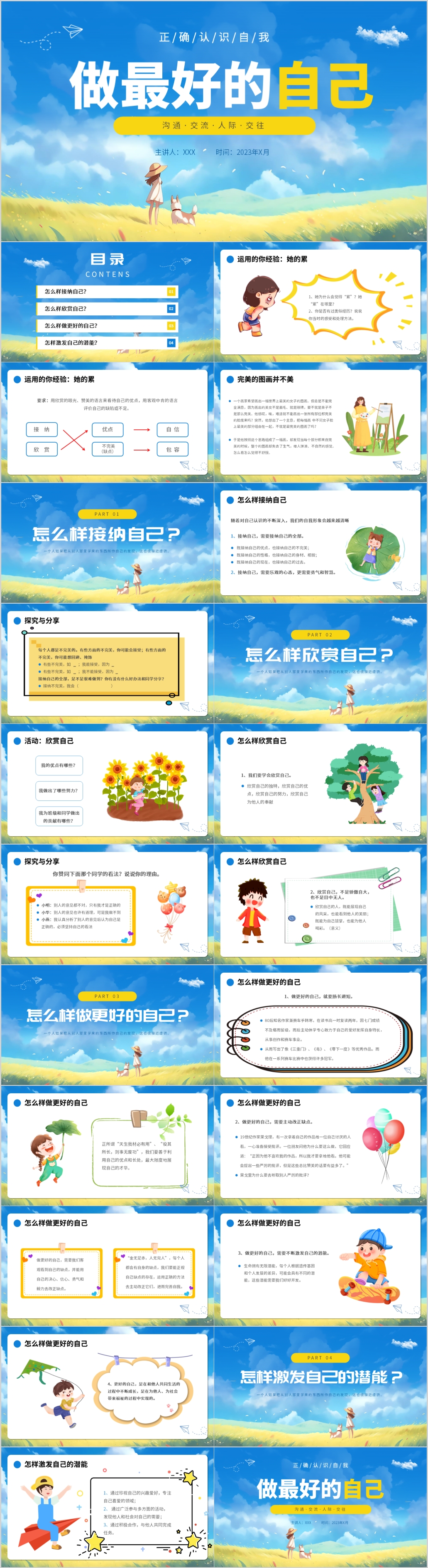 卡通人际沟通交流做最好的自己主题课件PPT模板