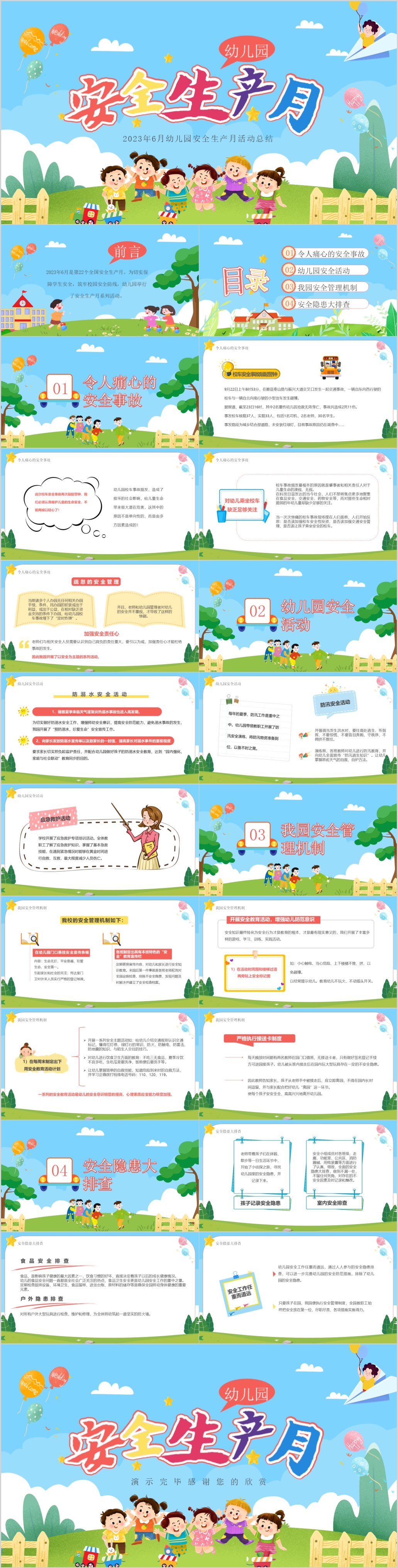2023年6月幼儿园安全生产月校园安全主题班会活动总结课件ppt模板