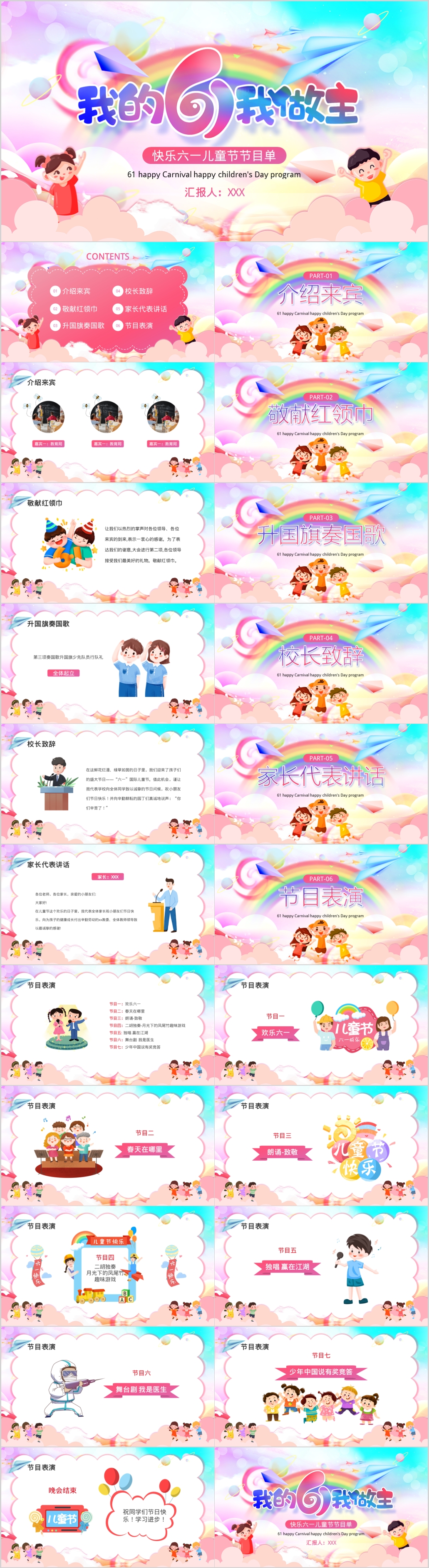 卡通我的六一我作主快乐六一儿童活动节目单主题ppt模板