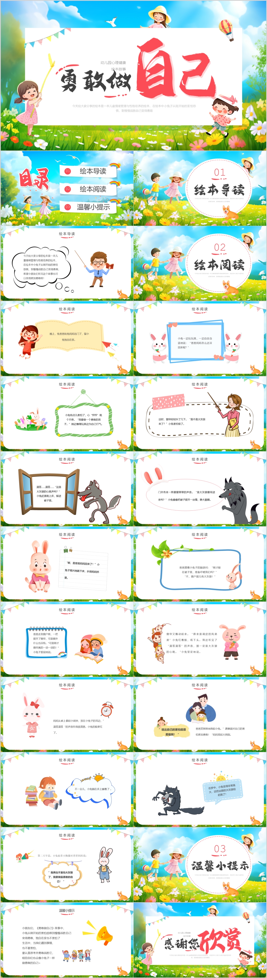 插画幼儿园心理健康勇敢做自己主题班会PPT模板