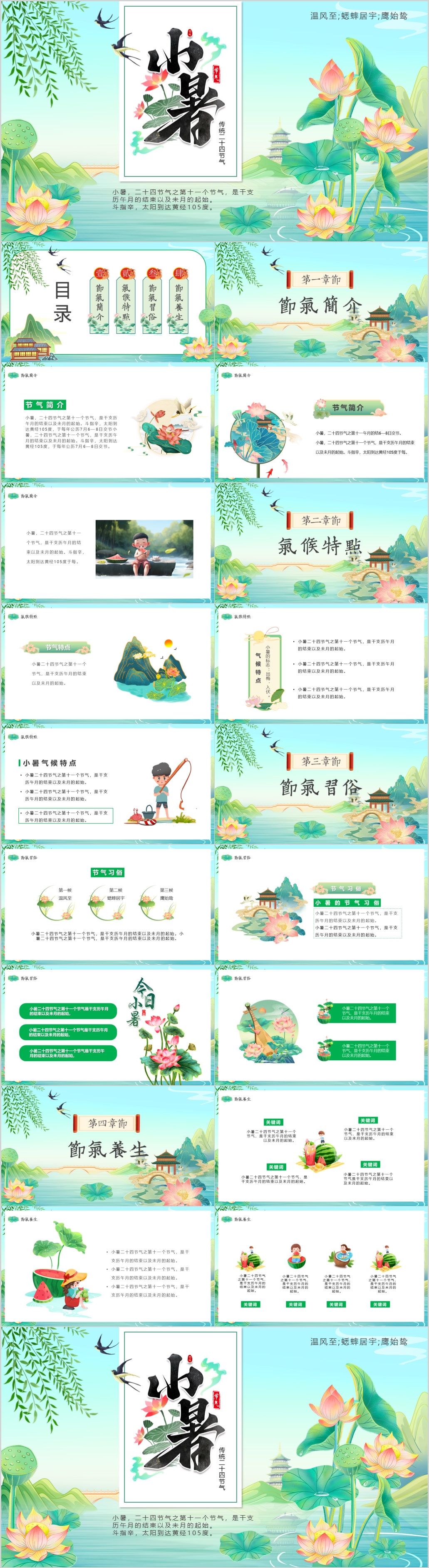 卡通二十四节气小暑主题班会教育PPT课件模板