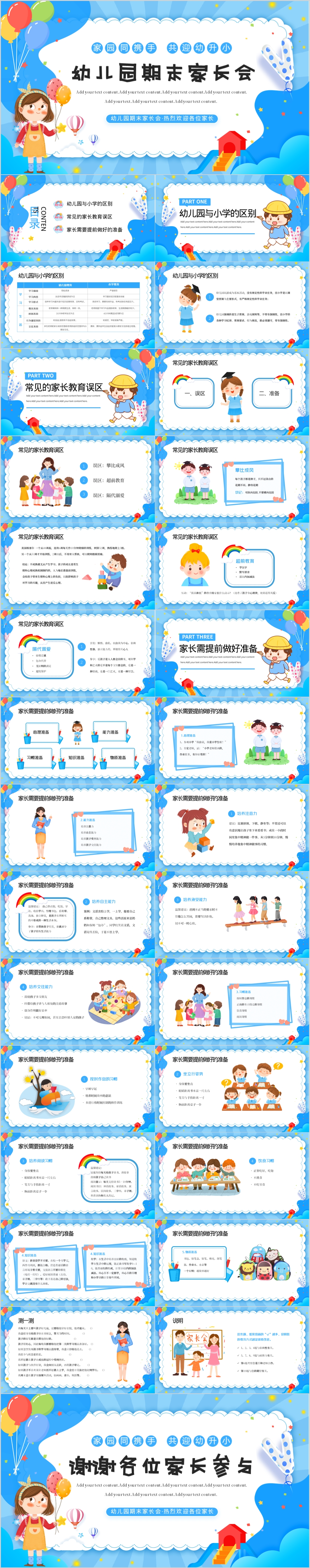 蓝色卡通风幼儿园线上期末家长会主题班会ppt模板