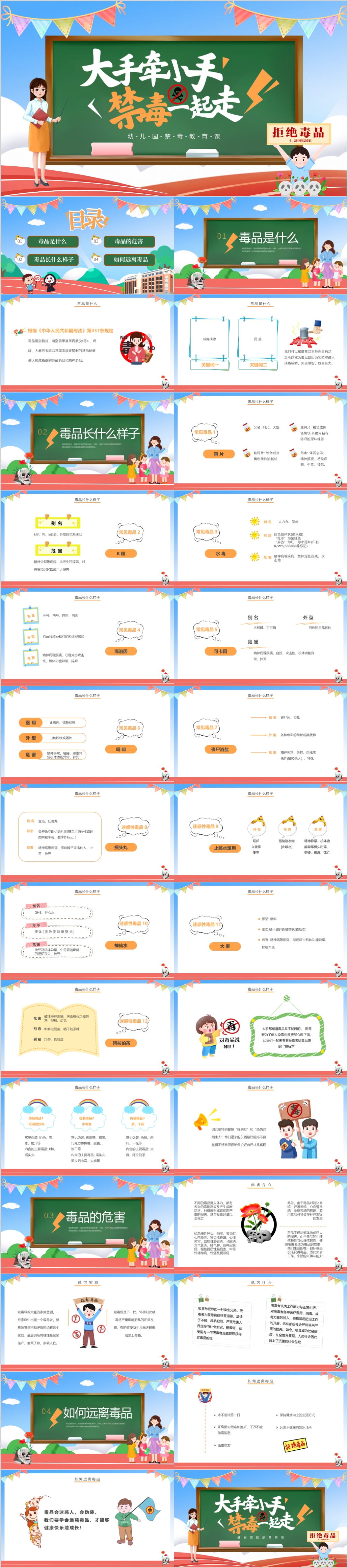卡通黑板风幼儿园认识毒品国际禁毒日主题班会课件PPT模板