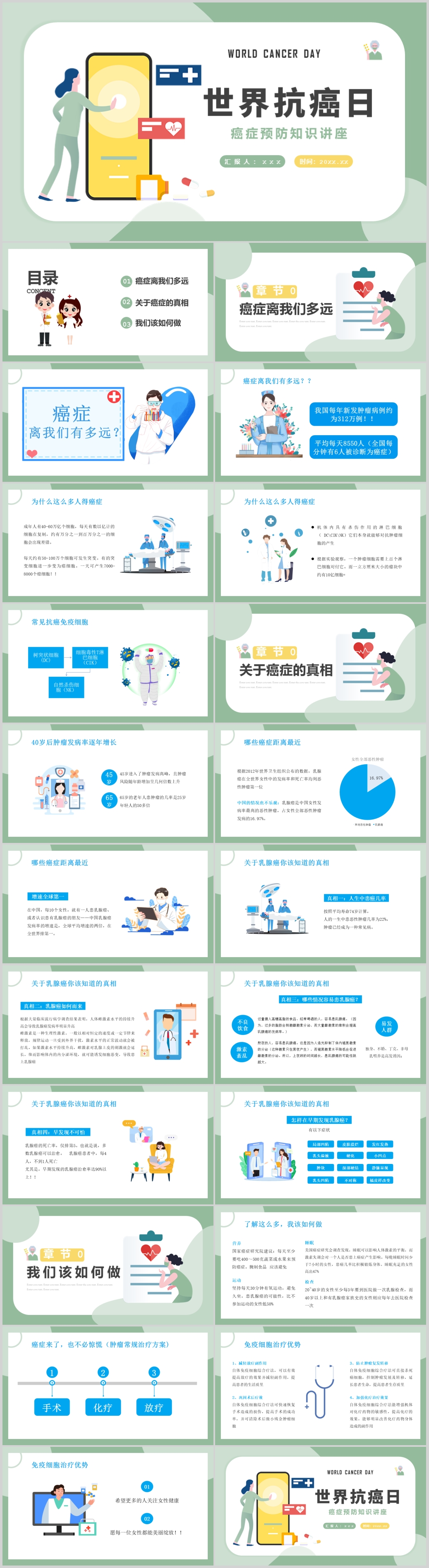 2022世界抗癌日癌症预防知识讲座课件培训PPT模板