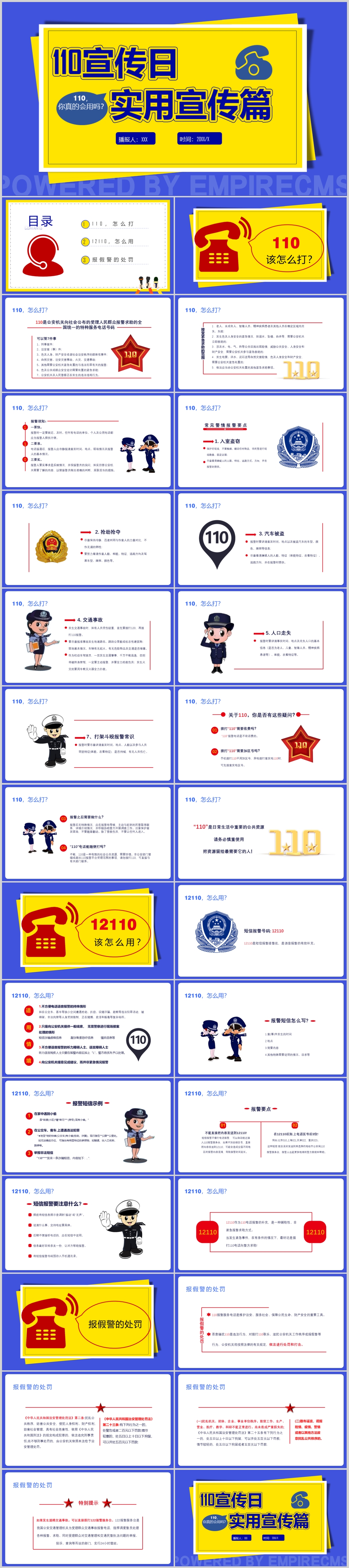 扁平化全国110宣传日教育主题课件PPT模板