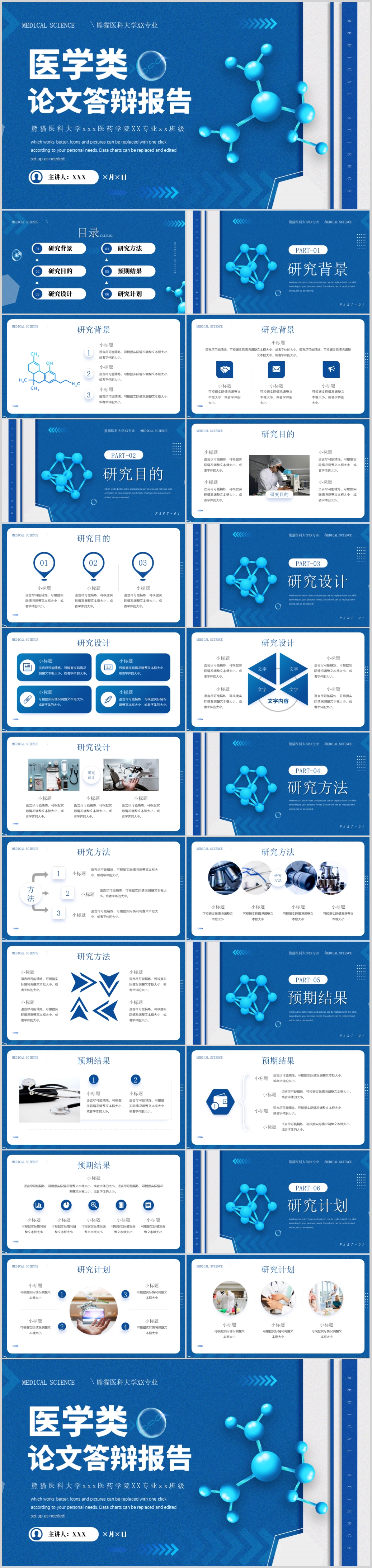 蓝色简约简约医疗医学答辩动态PPT模板