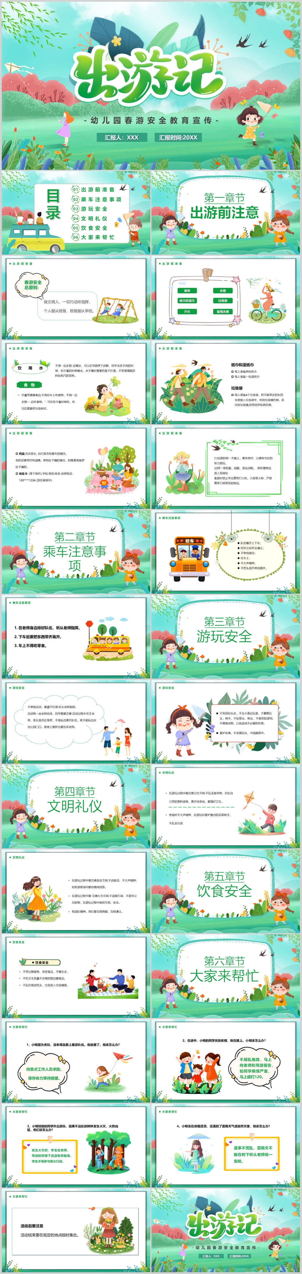 绿色小清新春季出行旅游通用动态PPT模板