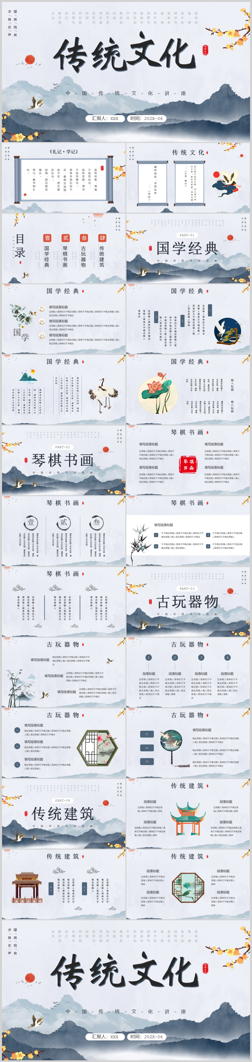 水墨古风古典艺术中国风传统文化工作总结计划ppt模板