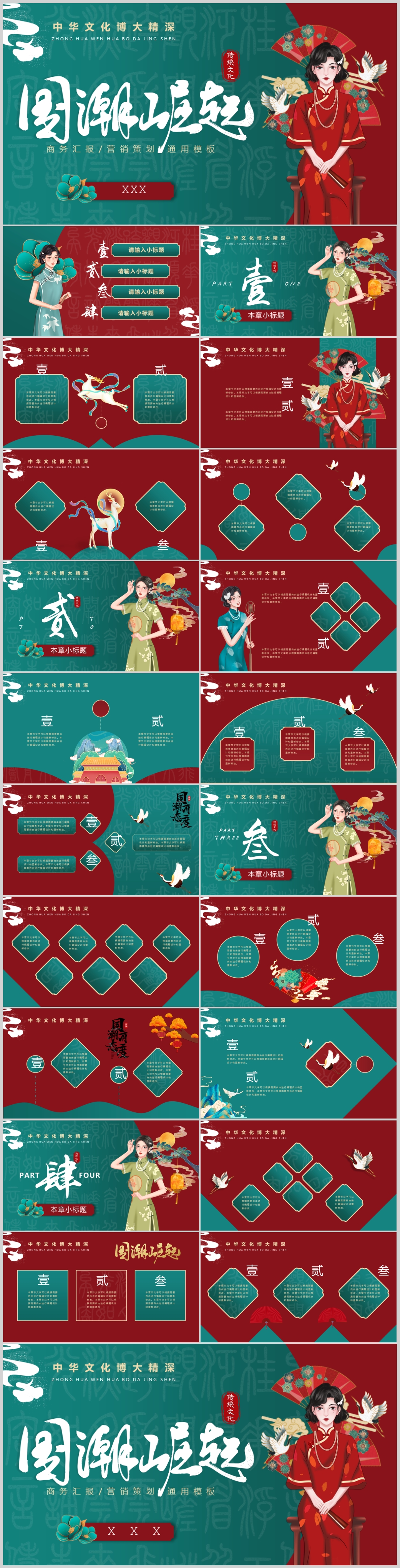 中国风国潮风年中总结古典古韵PPT模板