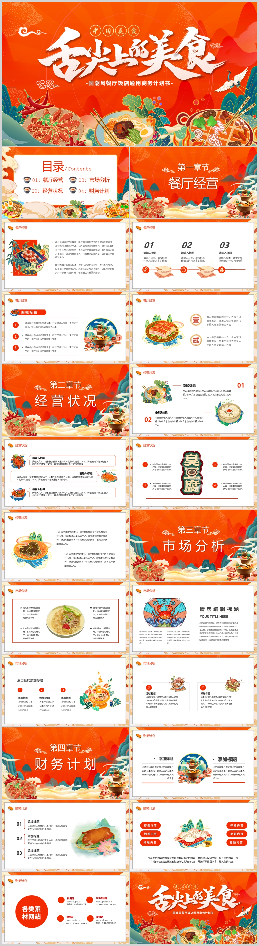 国潮风舌尖上的中国传统美食文化饮食餐饮PPT模板